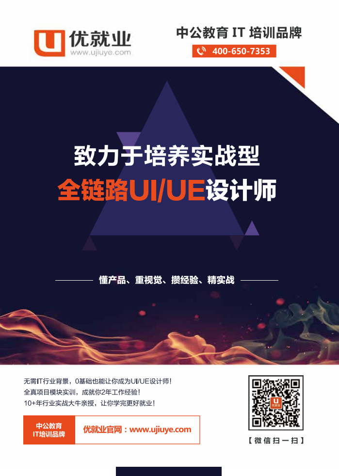 | UI行业概述与课程介绍 | UI行业概述、课程体系介绍、视觉设计基础阶段课程介绍 | 1.精通设计软件(PS、Ai); 2、掌握多种载体设 计规范、字体/配色/ 排版等设计技法及多 种类型设计风格并能 完成综合项目; 3、养成良好的设计 职业习惯,提升设计 审美能力; | 1.扁平ICON, 拟 物ICON 主题制作 2、商业特效合成 海报 3、APP引导页、闪 屏制作 4、综合型网页制 作 5、其他常见设计 产品界面制作 |